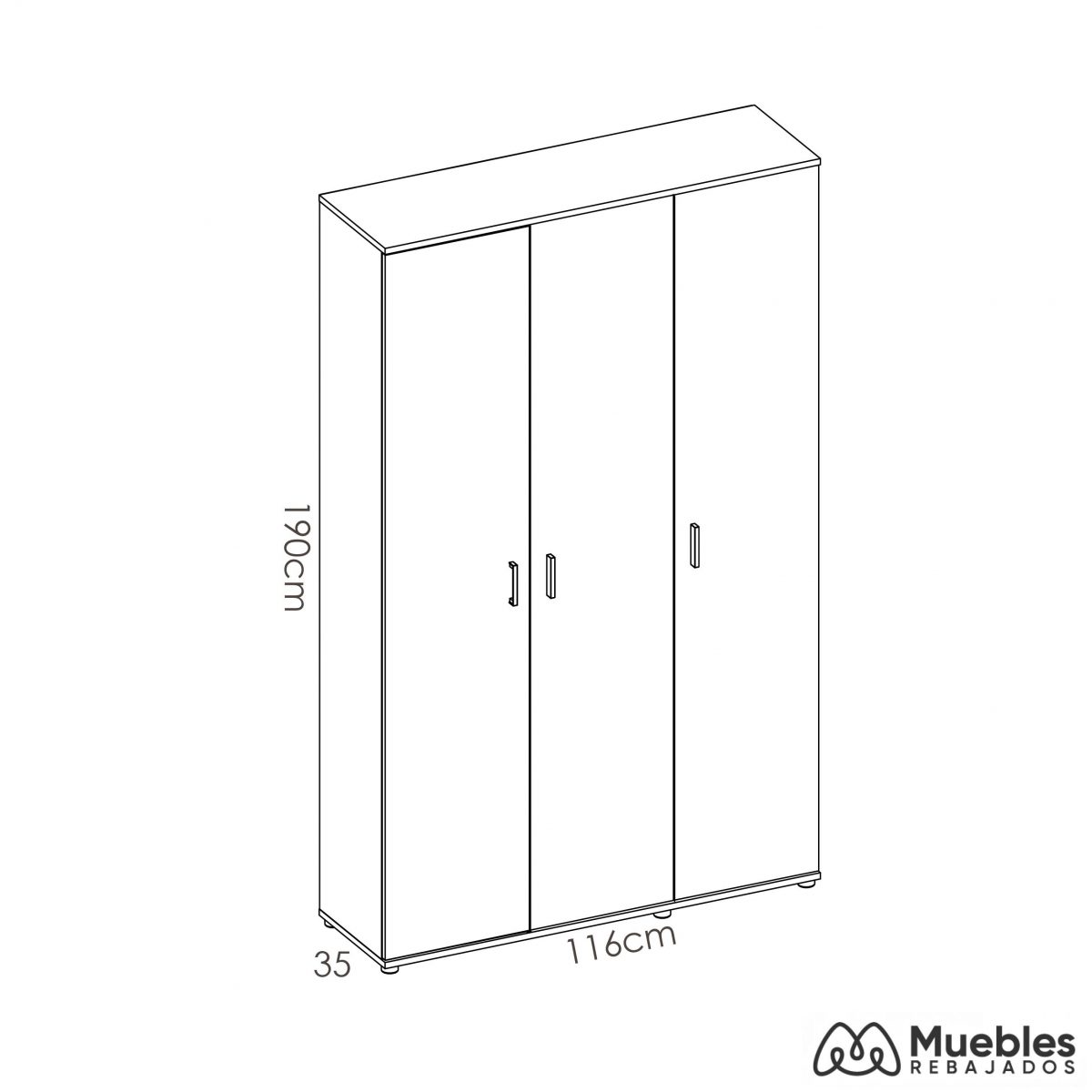 - Dimensiones: Alto: 190 cm x Ancho: 116 cm x Fondo: 35 cm.