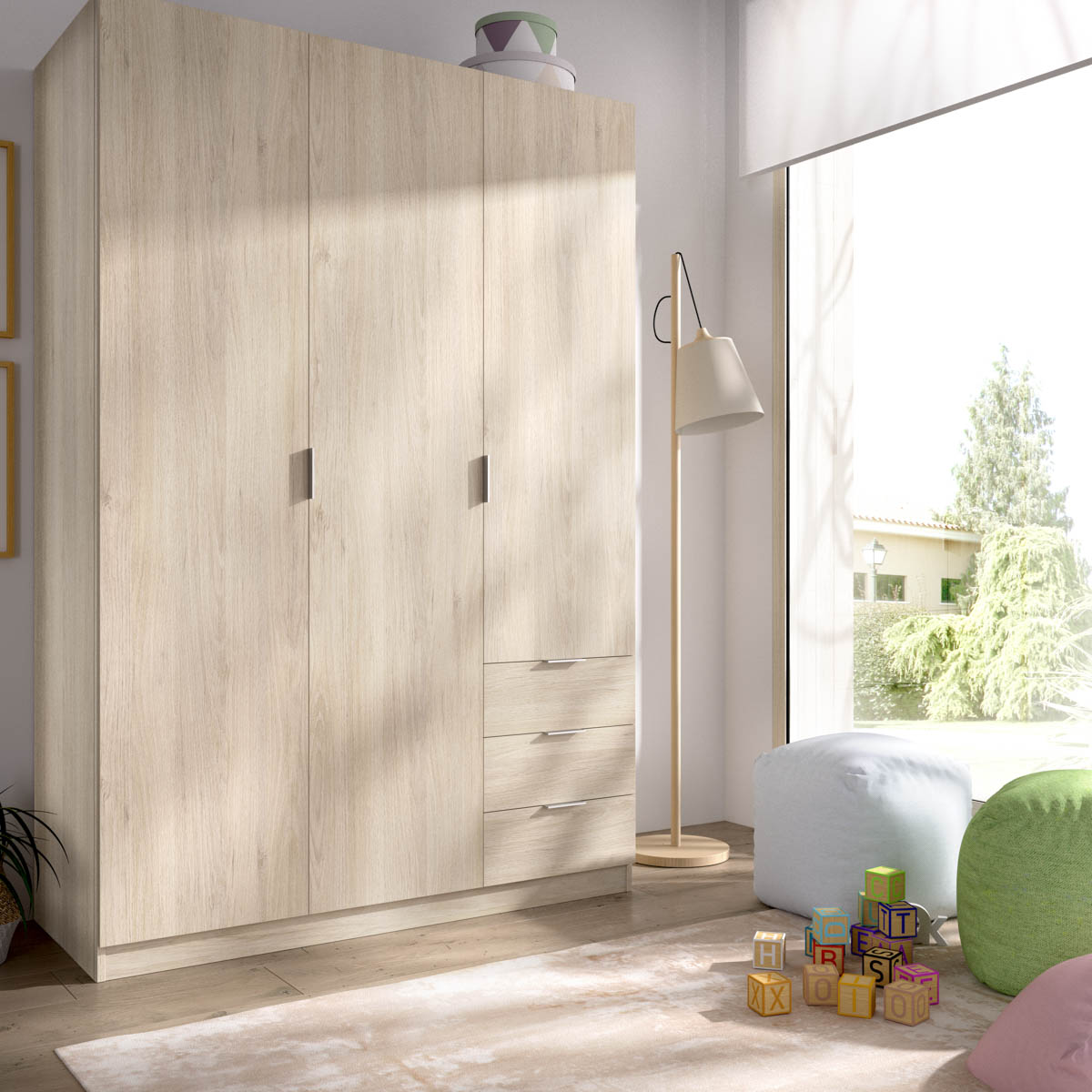 Armario de 3 puertas y 3 cajones 121cm Natural, NATURAL, ESSEN, 184cm x 121cm x 52cm, ⛟ ENVÍO GRATIS