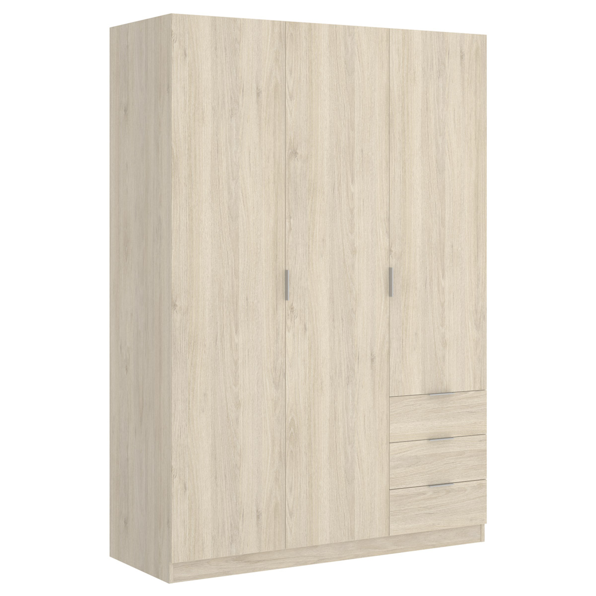Armario de 3 puertas y 3 cajones 121cm Natural