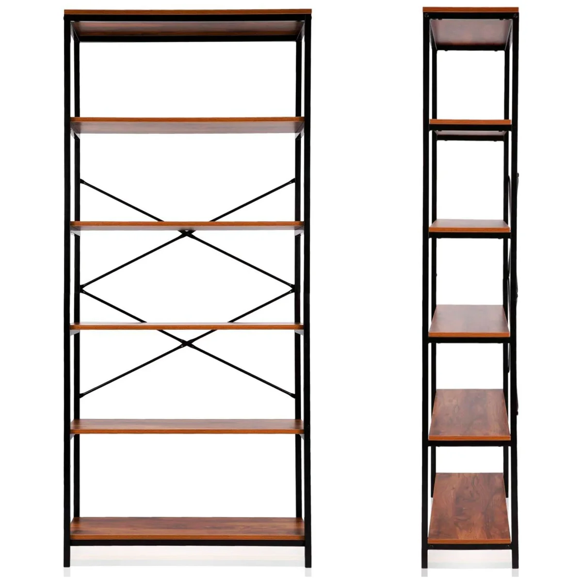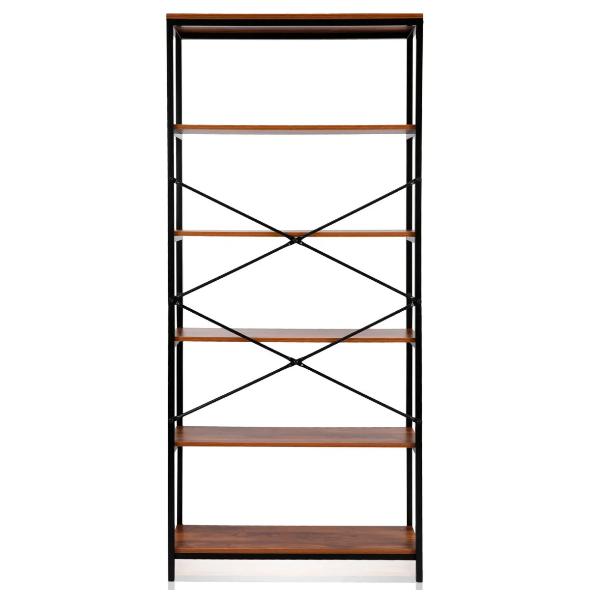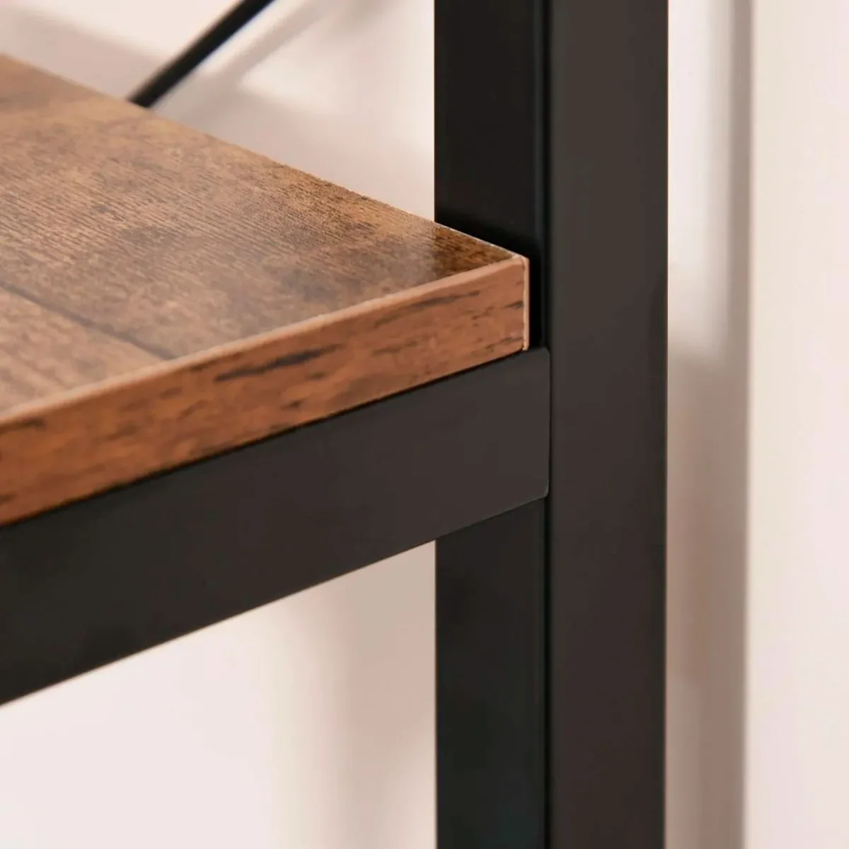 La estantería Nyana Home combina diseño, funcionalidad y estilo en una sola pieza. Con su estructura industrial de metal negro y baldas de madera, esta estantería aporta un toque moderno y elegante a cualquier estancia.
