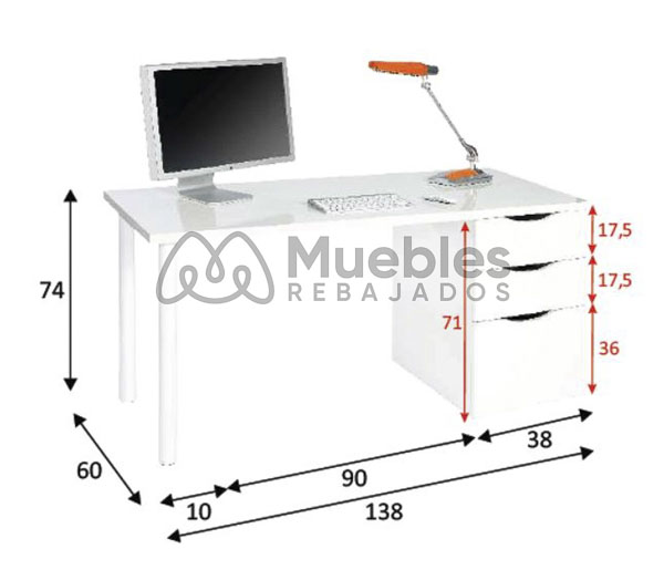 - Mueble: 74 cm (alto) x 138 cm (ancho) x 60 cm (prof.)