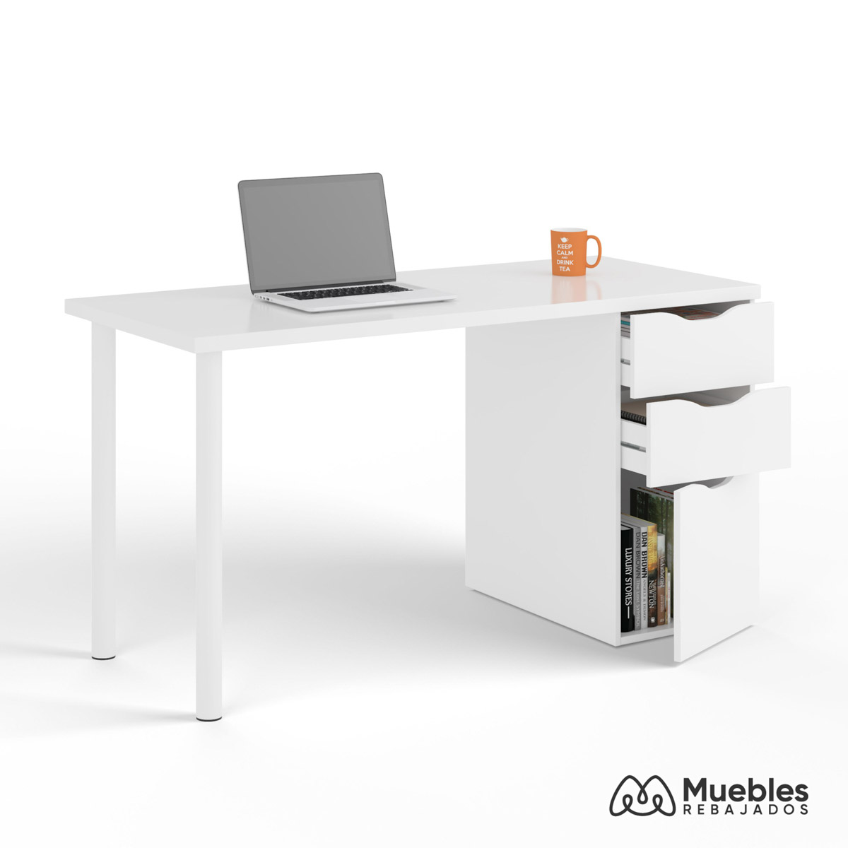 Descripción: Mesa de escritorio blanca. Mesa despacho reversible con buc de 2 cajones y una puerta. Mesa de escritorio blanca.