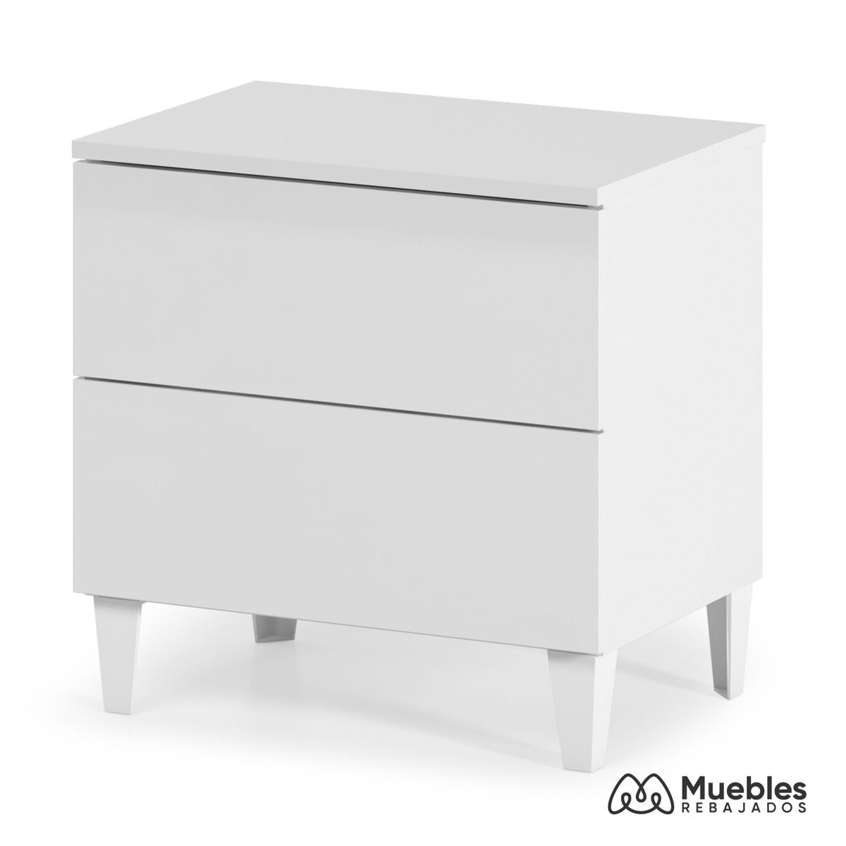 Descripción: Mesita de noche blanca barata. Mesita de dos cajones con patas.