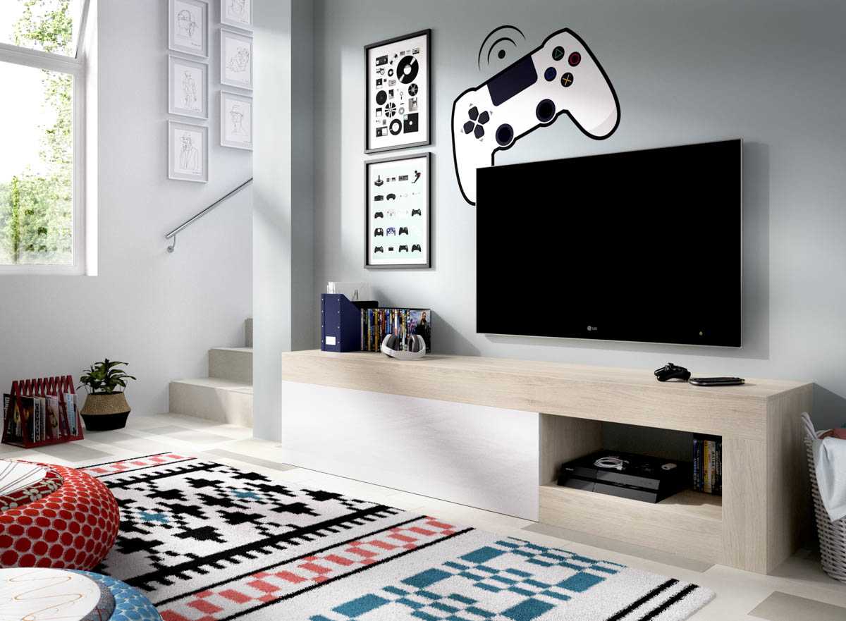 Mueble bajo tv lebo, NATURAL / B. BRILLO, LEBO, 48cm x 204cm x 42cm, ⛟ ENVÍO GRATIS