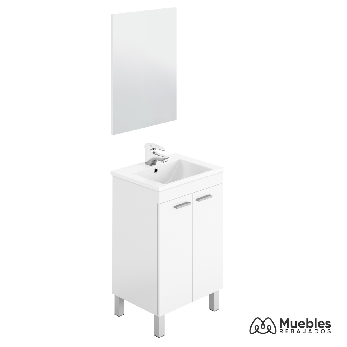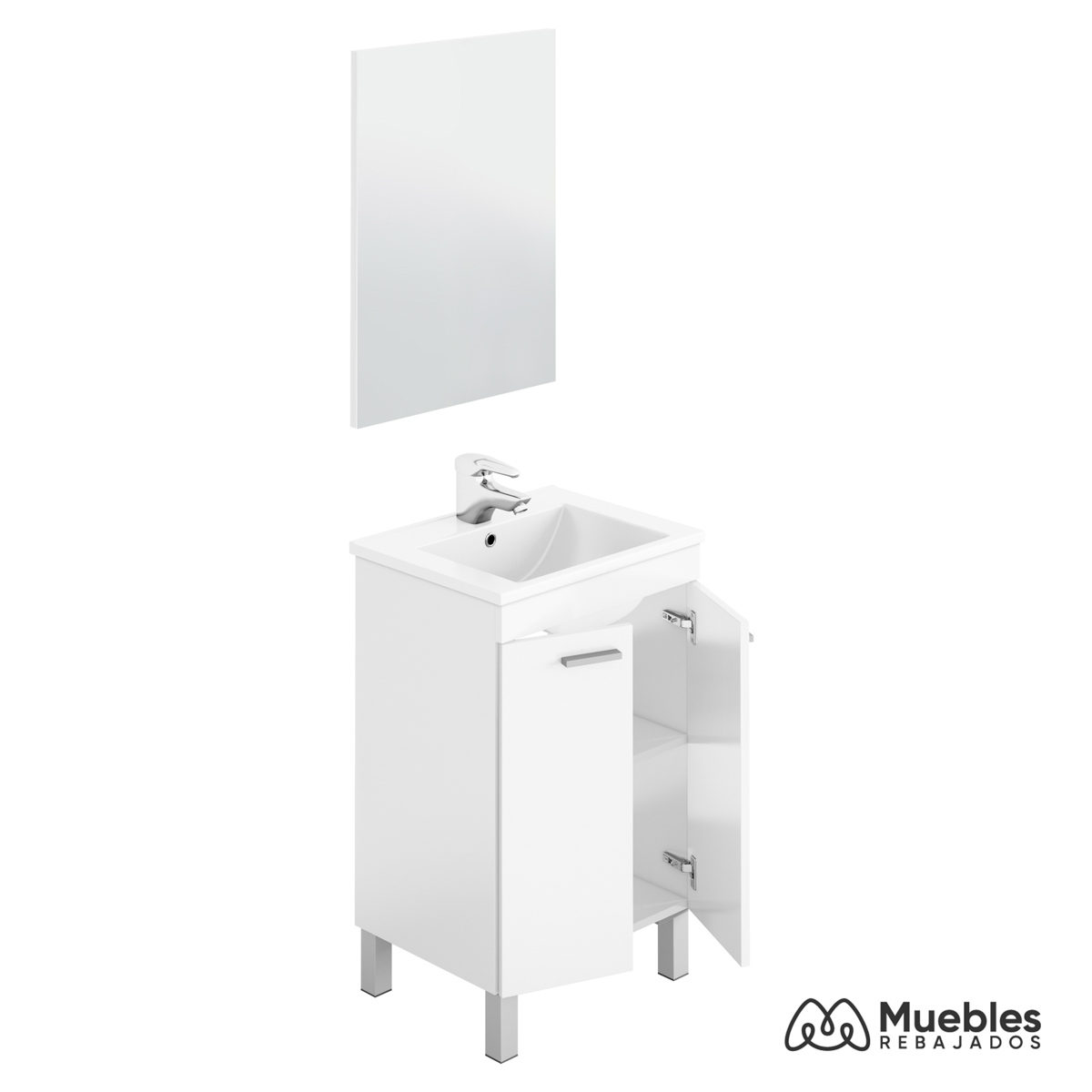 Descripción: Mueble de baño con 2 puertas y 4 patas. Incluye espejo del mismo acabado.