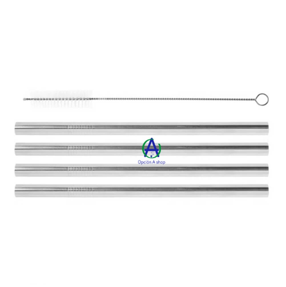Set de popotes rectos de acero inoxidable reutilizables con cepillo para limpiar.