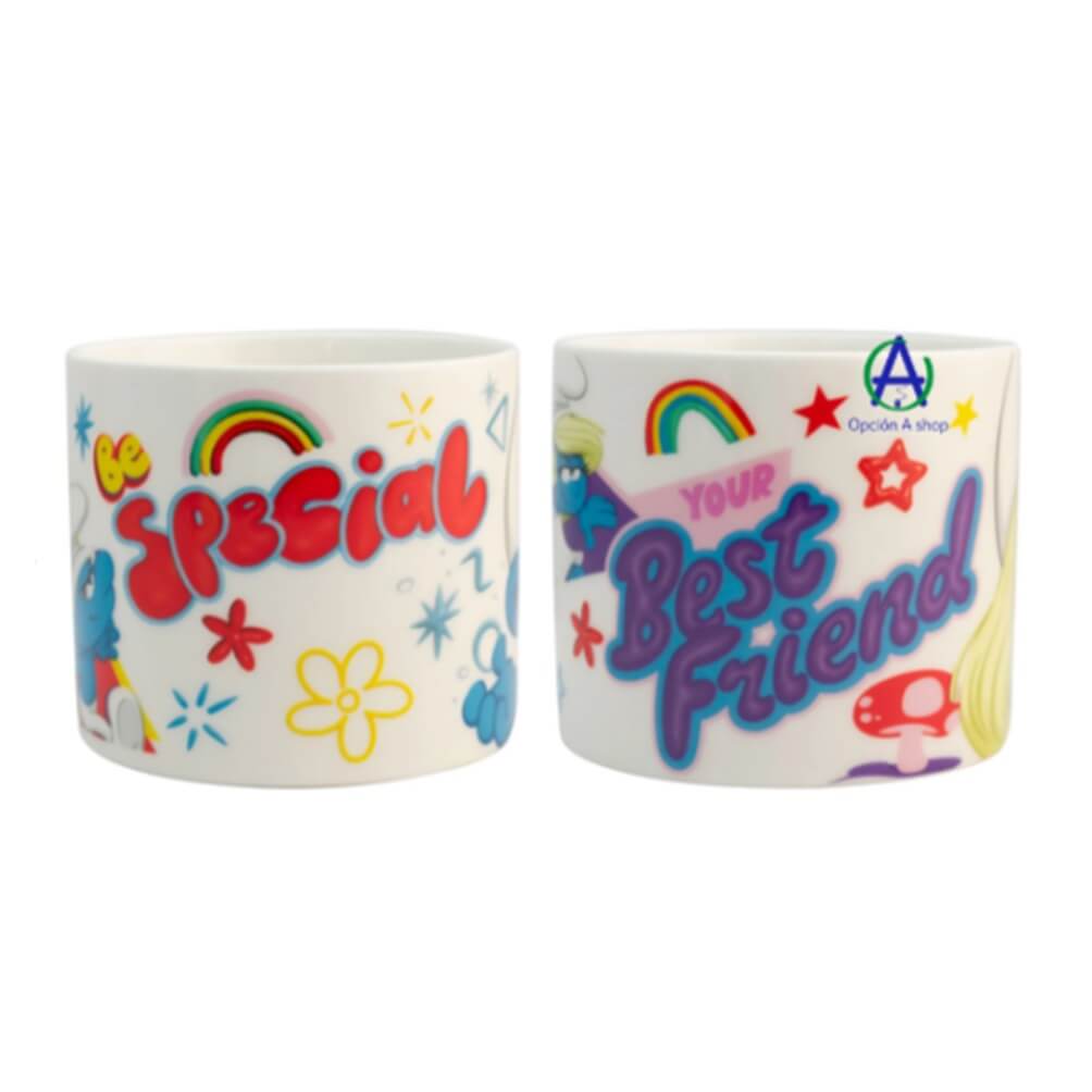 “¡Comparte momentos únicos con quien más quieres! Este dúo de tazas de porcelana, es perfecto para disfrutar juntos y estar a la moda con los personajes Pitufo y Pitufina.”