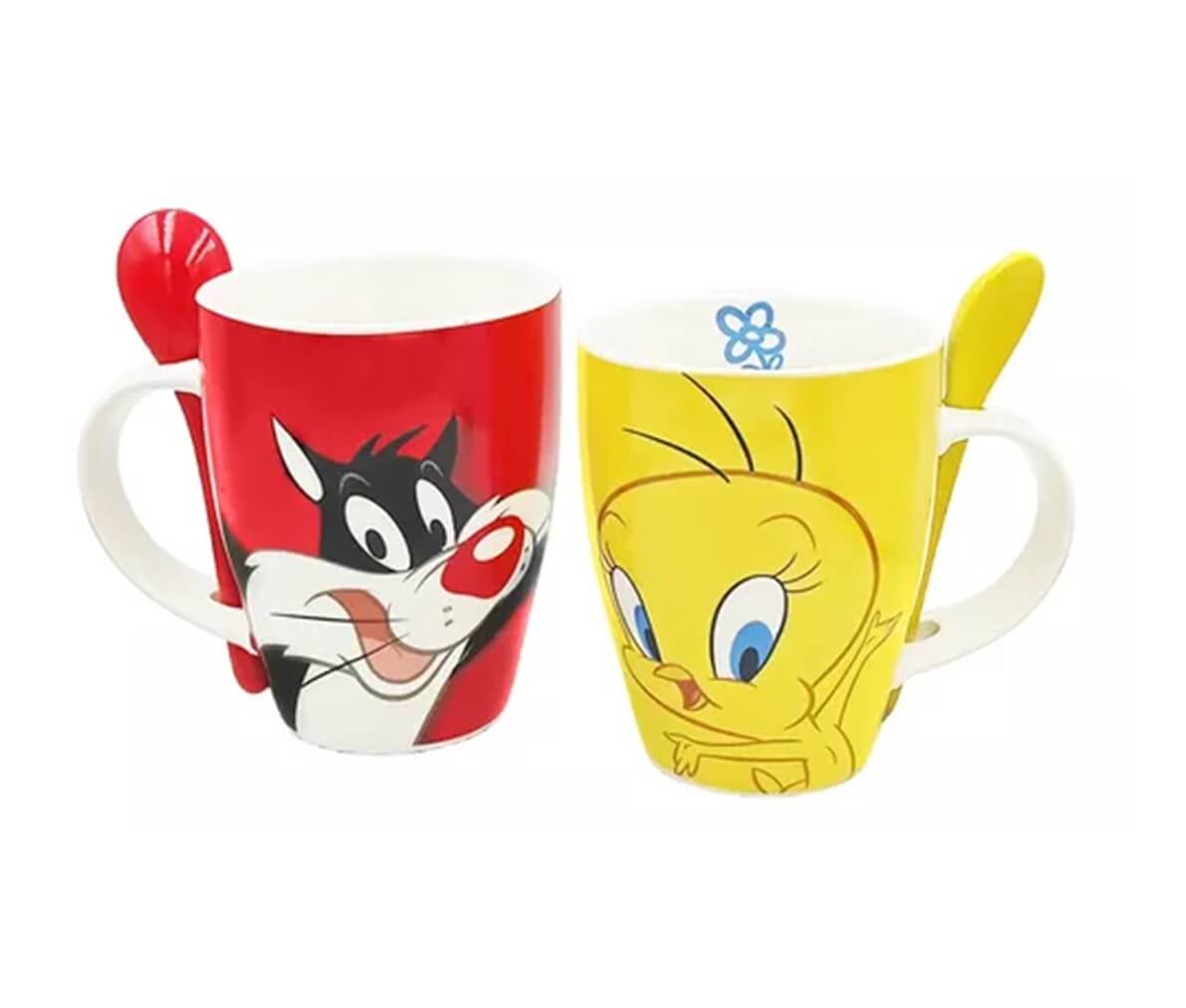 Tazas Silvestre Y Piolin Con Cuchara