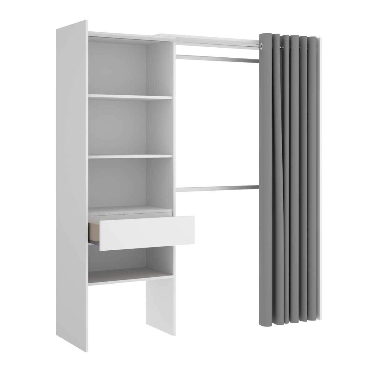Vestidor con 1 cajon y cortina, BLANCO, SUIT, 205cm x 160cm x 50cm, ⛟ ENVÍO GRATIS