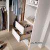 El vestidor rinconero Suit, está compuesto por dos módulos independientes preparados para adaptarse en forma de L ajustando la medida entre 213 y 163 cm * 141 cm.